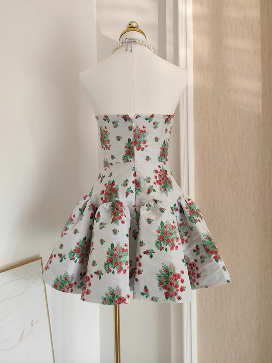 Cute A line Strapless Sleeveless Red Floral Party Dress Short Birthday Dresses SD352