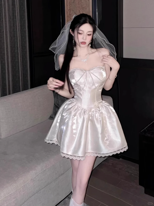 Elegant Satin Tulle Homecoming Dress Strapless Short Birthday Dress S434
