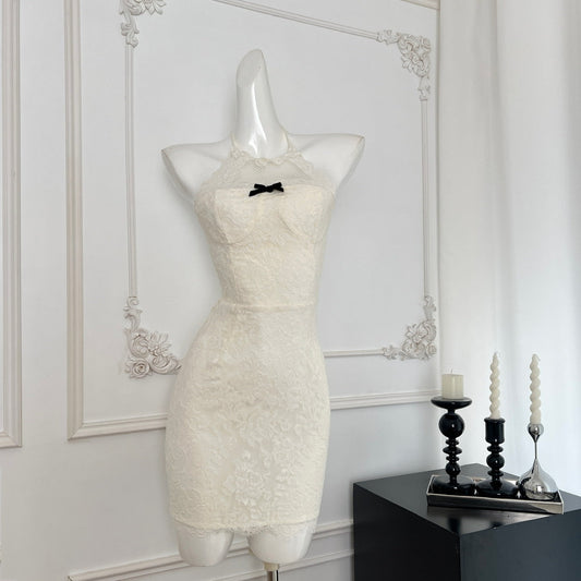 Cute Sheath Halter Neckline Short Lace Summer Dress Holiday Party Outfits For Women DP0123