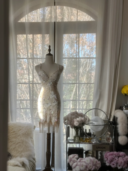 Gorgeous Halter Deep V Sequin Sheath Cocktail Dress Sexy White Short Party Dress S749