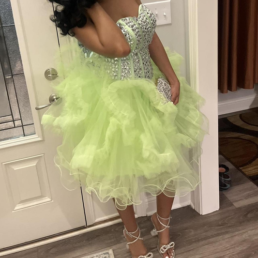 Fashion Sweetheart Neck Green Strapless Tulle Beaded Short 7th Grade Homecoming Dress Cocktail Dress S856
