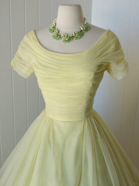 A Line Yellow Vintage Homecoming Dress Short Prom Dress Party Dress cg26052