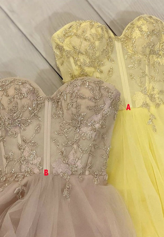 Yellow Short Prom Dress, Strapless Homecoming Dress H3469