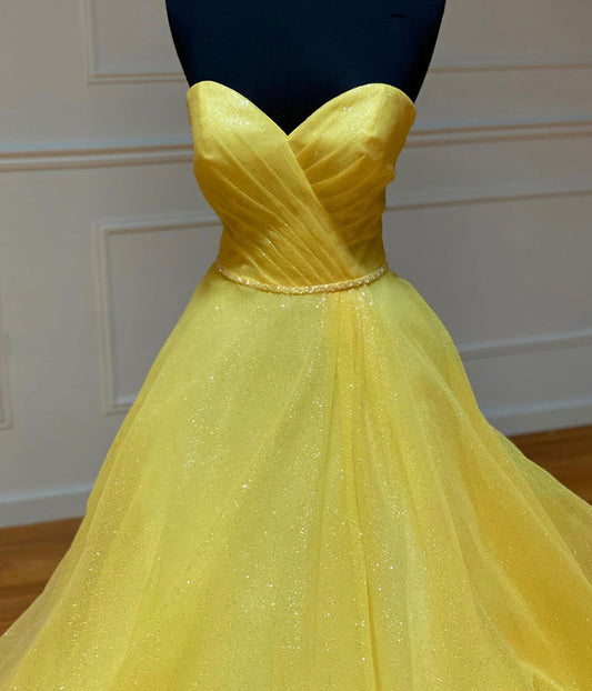 Yellow sweetheart tulle long prom dress yellow evening dress NN292