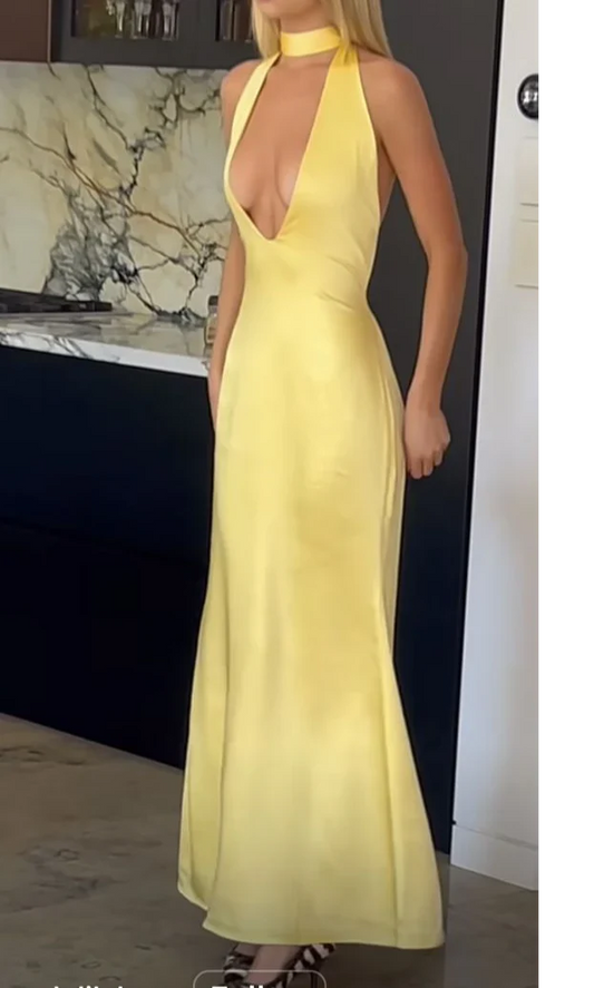 Yellow Halter Formal Dress Party Dress Long Evening Dress Prom Dresses fg7820