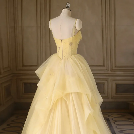 Pretty A Line Spaghetti Strap Corset Light Yellow Tulle Prom Dress Evening Dress SH2210