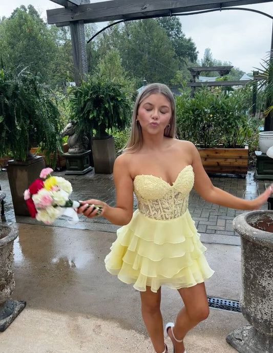 A Line Yellow Short Prom Dress Birthday Party Dress Homecoming Dress fg8163