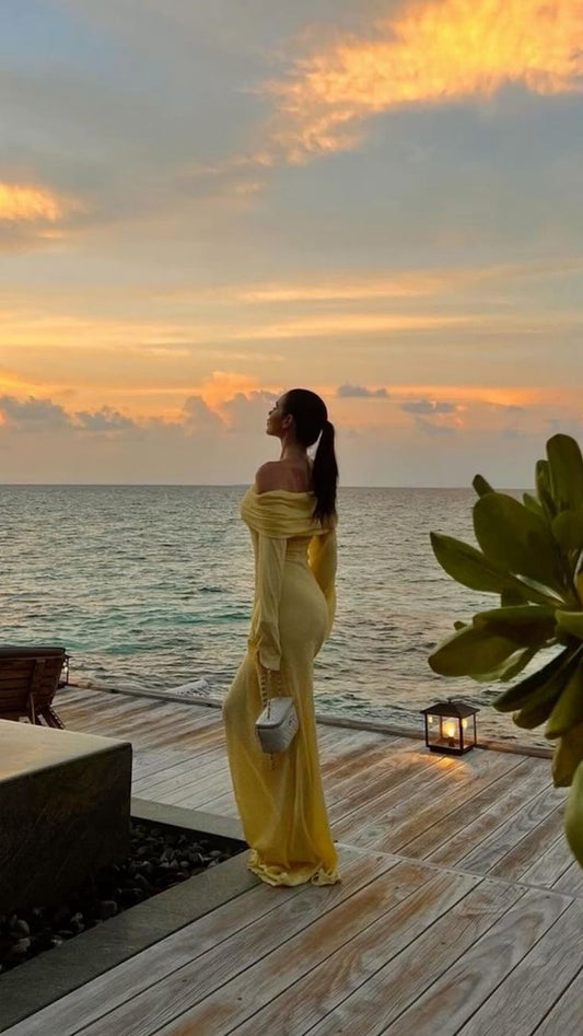 Classy Mermaid Off The Shoulder Yellow Long Sleeves Evening Dress Prom Dresses SD2061