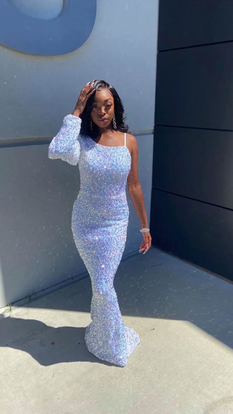 Sexy White Prom Dress Long One Sleeve Sequins Evening Dresses