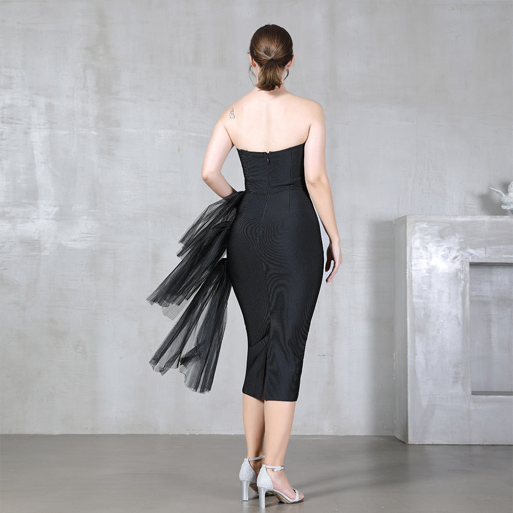 loveedsTM - 2024 New Bandage Dress Sexy Bodycon Women Mesh Strapless Party Club Evening Elegant Black White Clothes