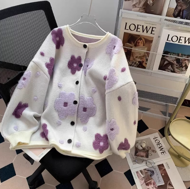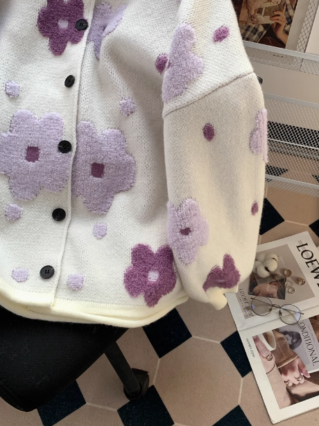 3D Flocked Flower Cardigan ED0247