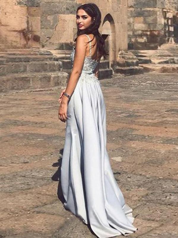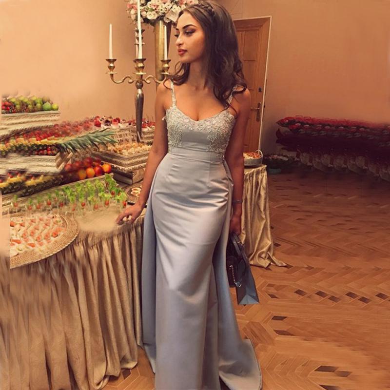 Spaghetti Strap Grey Mermaid Lace Top Long Prom Dress