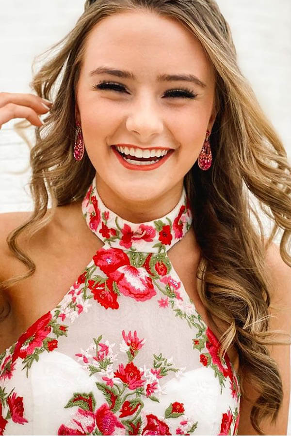 Colorful Embroider High Low Halter Two Pieces Long Prom Dress