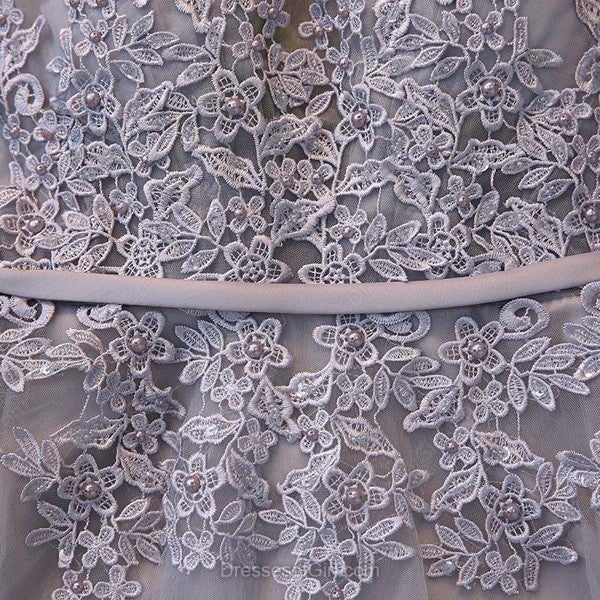 Tulle A-line V-neck Knee-length Lace Short Prom Dresses,Homecoming Dress with Applique