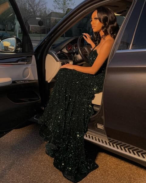 Elegant Black Mermaid Evening Dresses,Sequin Long Prom Dress,Gala Dress