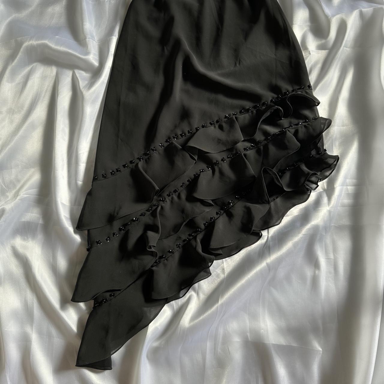 Black Beautiful Vintage Elegant Exquisite Floral Beading 3D Flower Applique Asymmetric Ruffle Dress Midi Chiffon Homecoming Dress Prom Dress Evening Dress Party Dress Graduation Dress gh3940