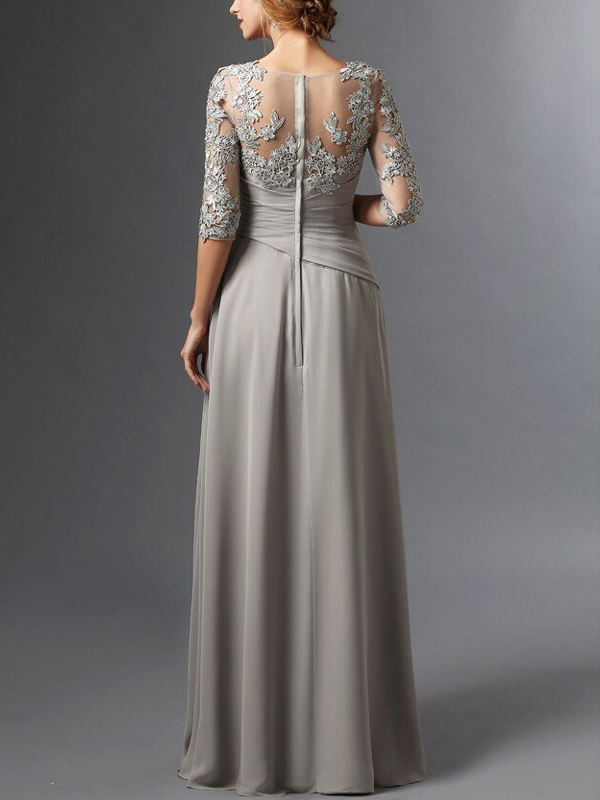 A-Line 3/4 Sleeve Chiffon Lace Maxi Dress