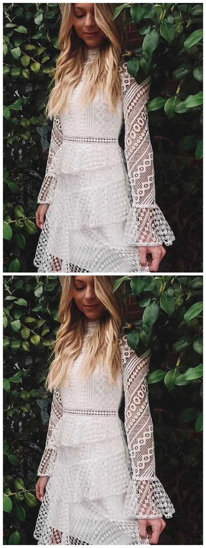 A-Line High Neck Above-Knee White Lace Homecoming Dress cg10054