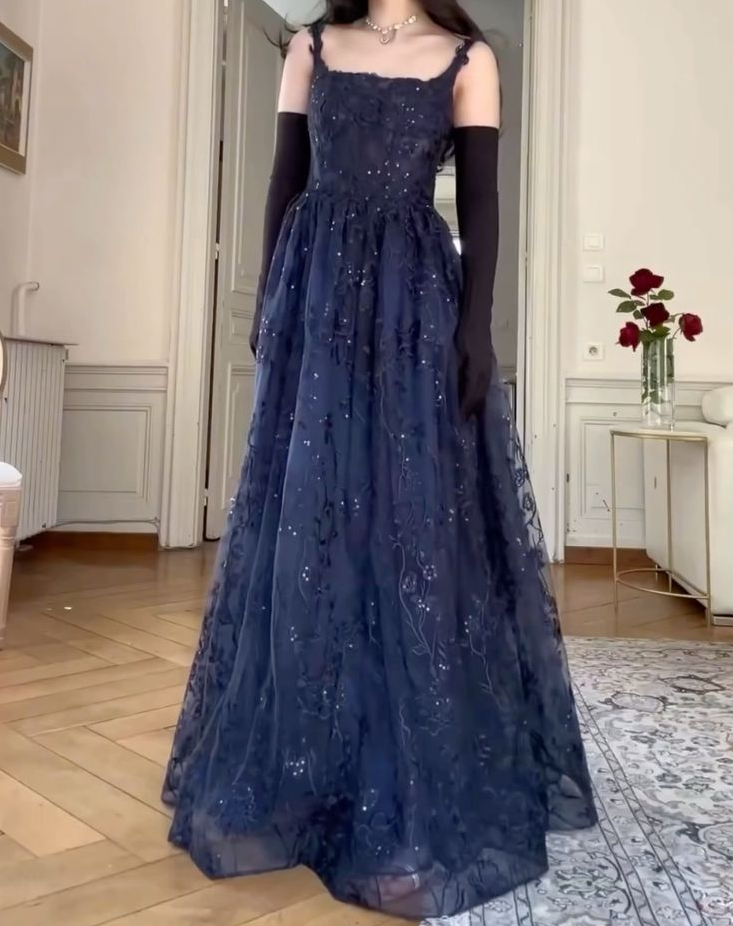 A Line Navy Blue Elegant Birthday Party Dress Long Evening Dress fg7183