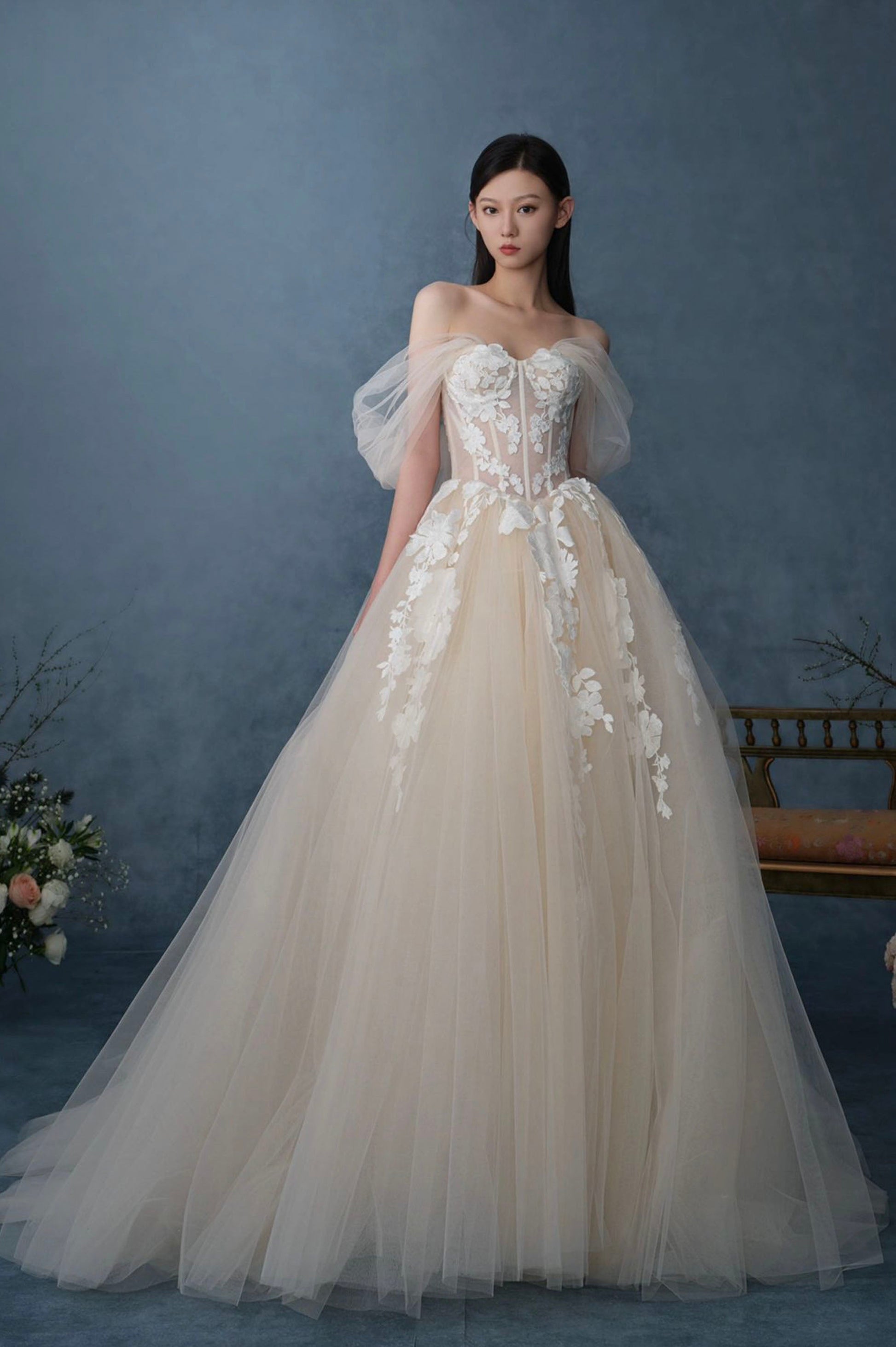 The Off the Shoulder Lace Long Champagne Prom Dress is a captivating choice for formal occasions. Featuring an off-shoulder neckline and exquisite lace detailing, it exudes timeless elegance. In a lovely champagne hue, this gown ensures you radiate sophistication and grace, making it the perfect option for an unforgettable evening.
