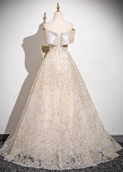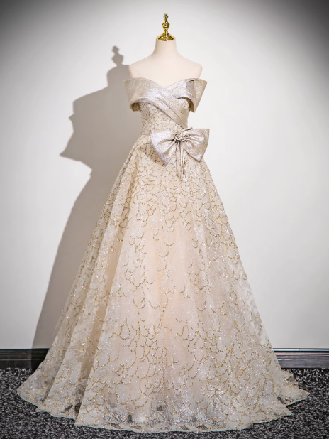 A-line off-shoulder satin tulle sequin long prom dress, evening dress ED0968