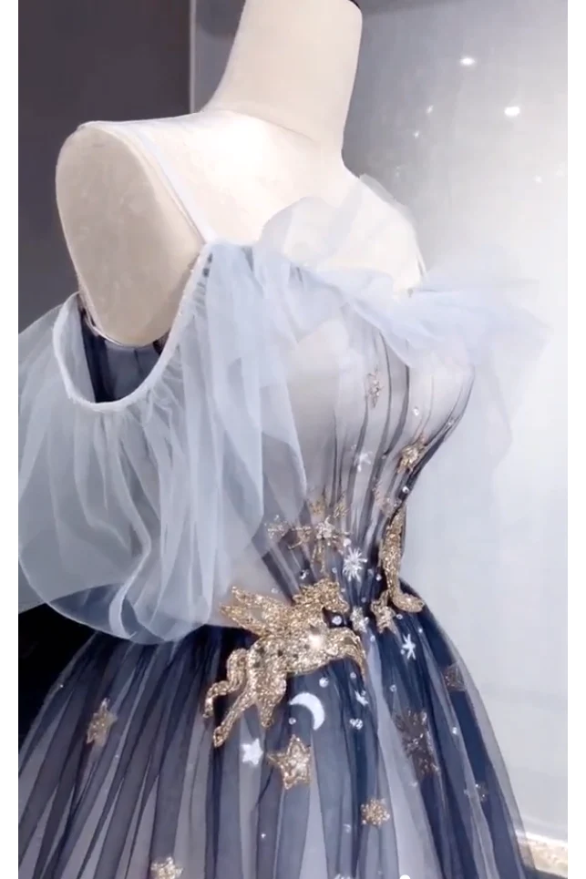A Line Off the Shoulder Ombre Prom Dress, Long Tulle Prom Dress with Saprkles fg2489