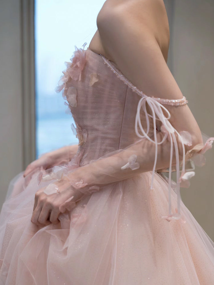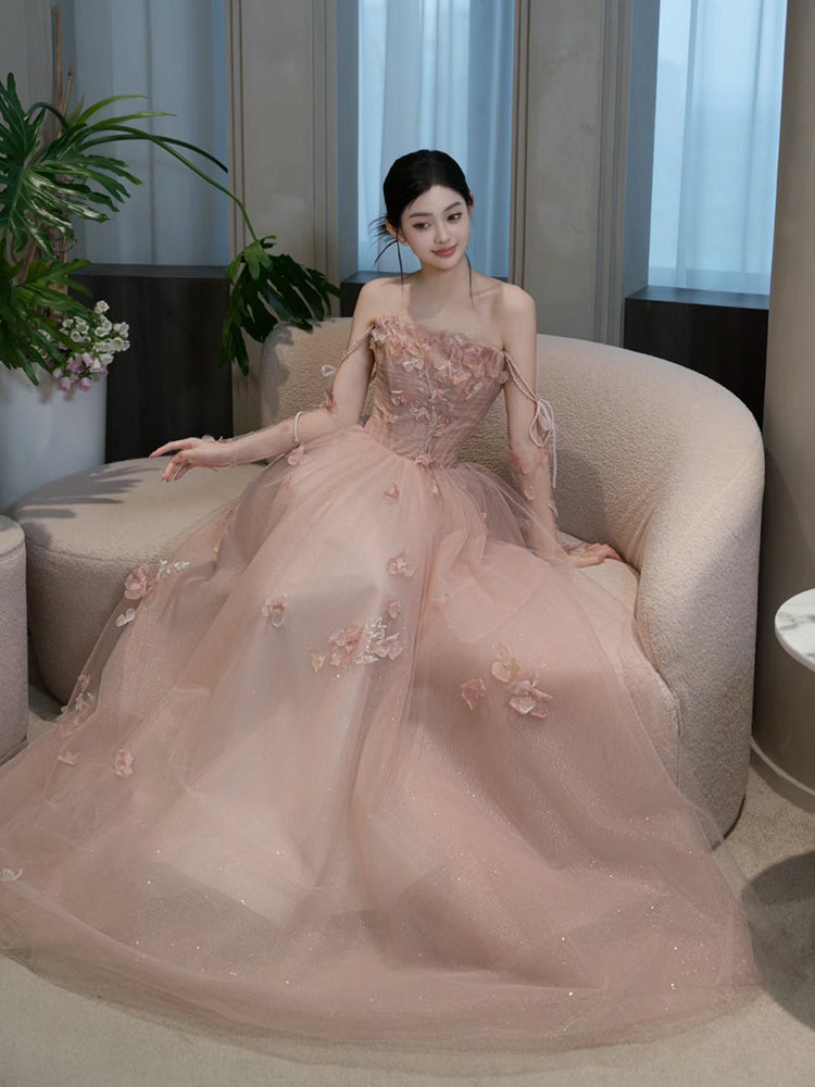 A Line Pink Long Formal Dress Tulle Evening Dresses fg7673