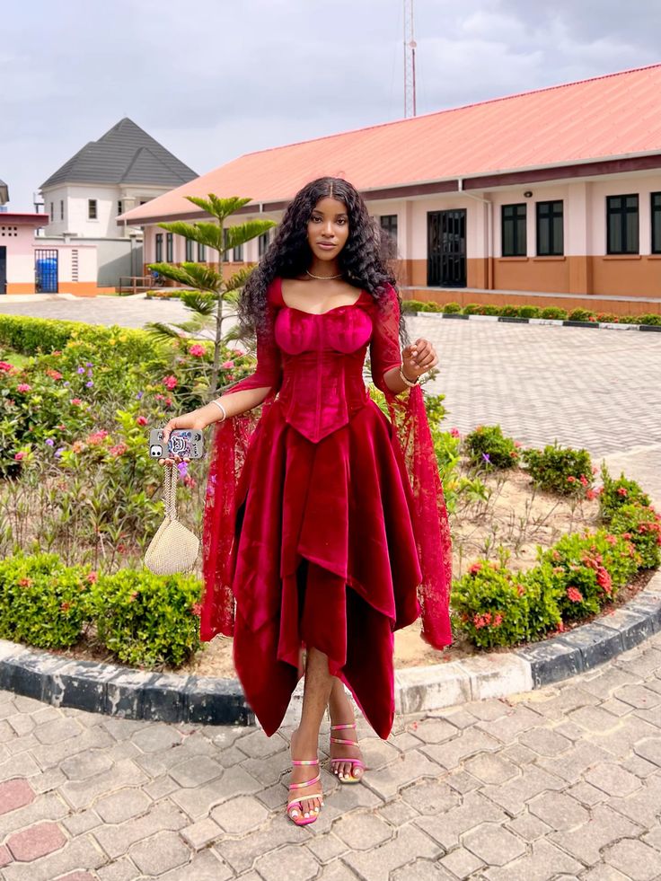 A-line Red Velvet Prom Dress Unique Evening Dress fg6971