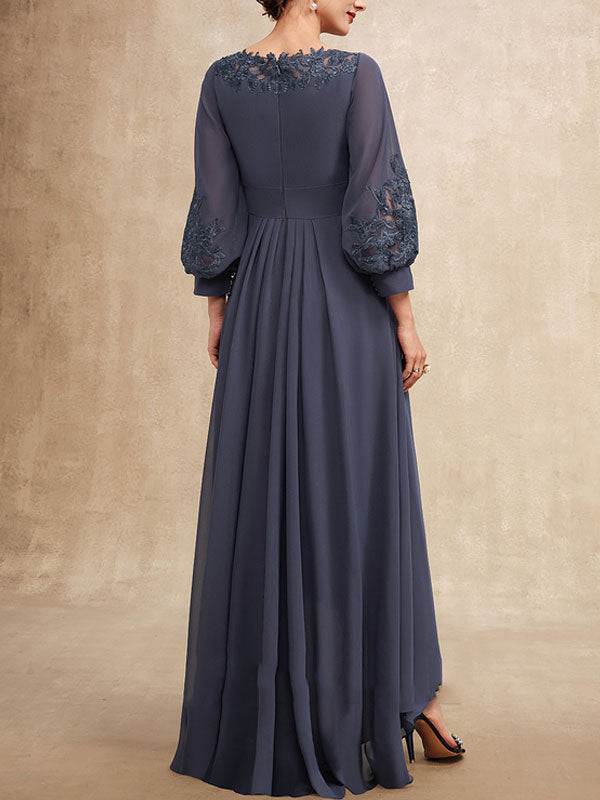 A-Line Scoop Neck Asymmetrical Chiffon Mother of the Bride Dress With Ruffle Appliques Lace