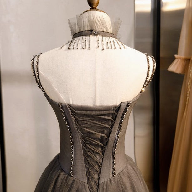 A-Line Spaghetti Strap Tulle Beaded Long Prom Dress Graduation Prom Dress Birthday Dress ED01669