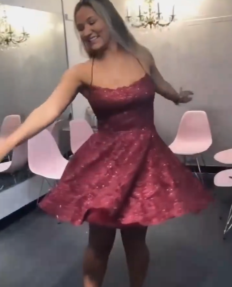 A Line Spaghetti Straps Cross Back Blue Lace Short Homecoming Dress cg12900
