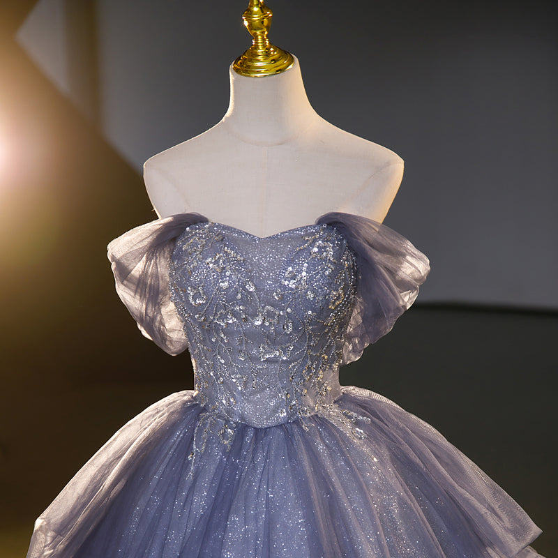A-line strapless tulle sequin long prom dress, evening dress ED01101
