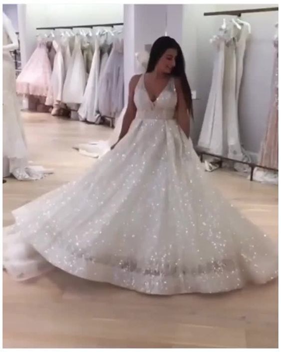 A-line V Neck Shiny Prom Dress , Chamring Prom Dress cg17291