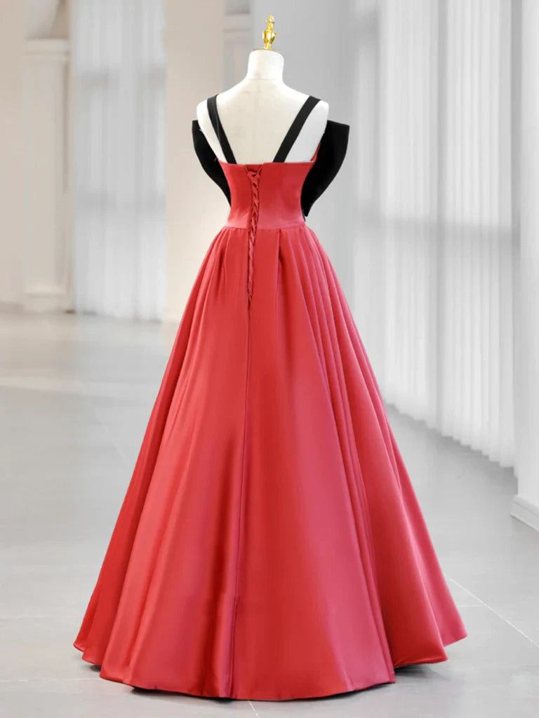 A-Line Watermelon Red Satin Long Prom Dress, Long Formal Dress ED0735