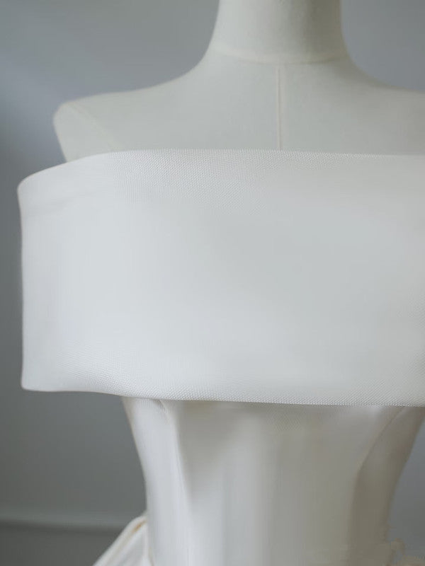 Aesthetic Ball Gown Strapless Ivory Satin Long Wedding Dresses Brides Dress S3805