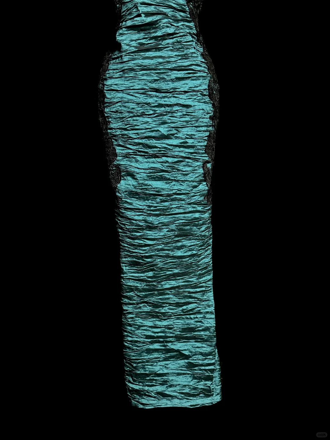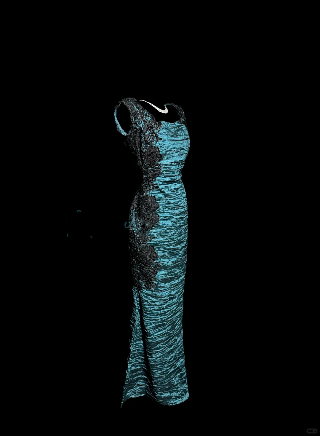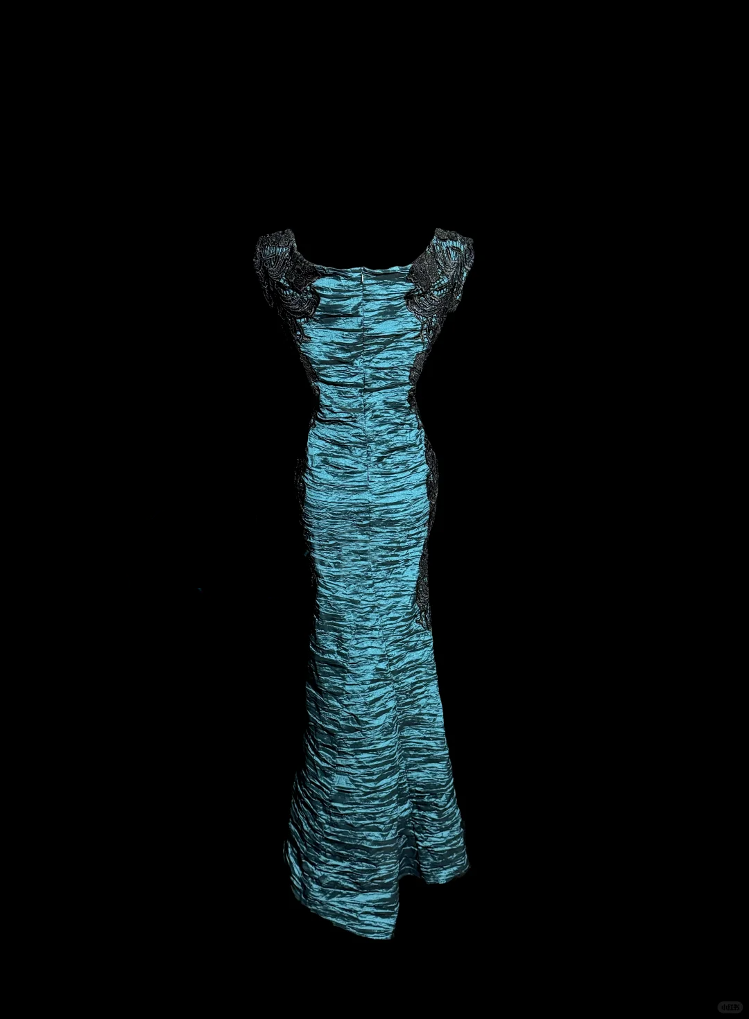 Aesthetic Mermaid Square Neckline Blue Taffeta Prom Dress Ruffle Long Party Dress SD2918
