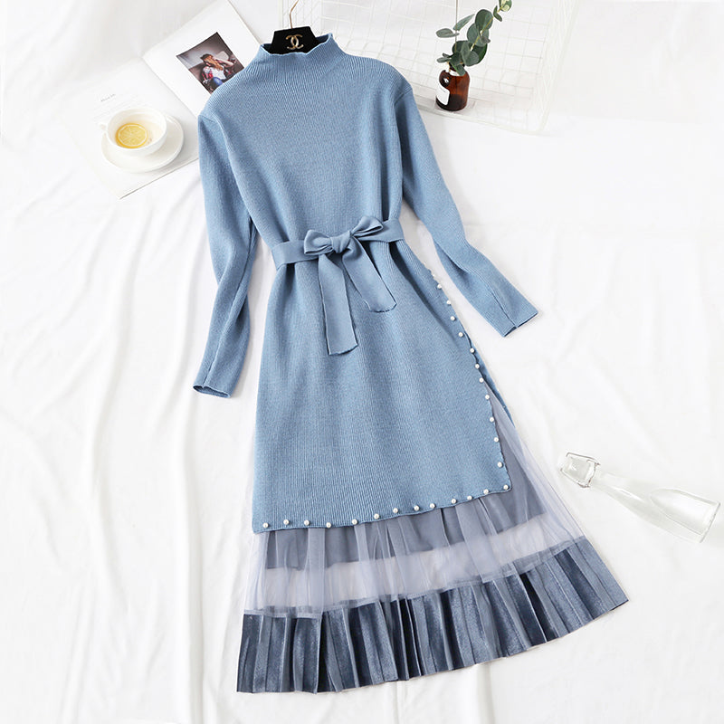 Age reduction suit two piece Pullover temperament knitted dress knee length skirt children 2172
