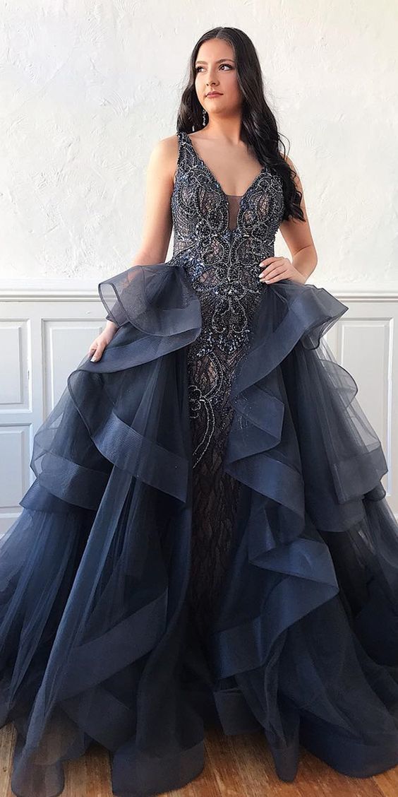 Amazing Lace Beaded V-Neck Mermaid Evening Dress Long Prom Dress cg13242