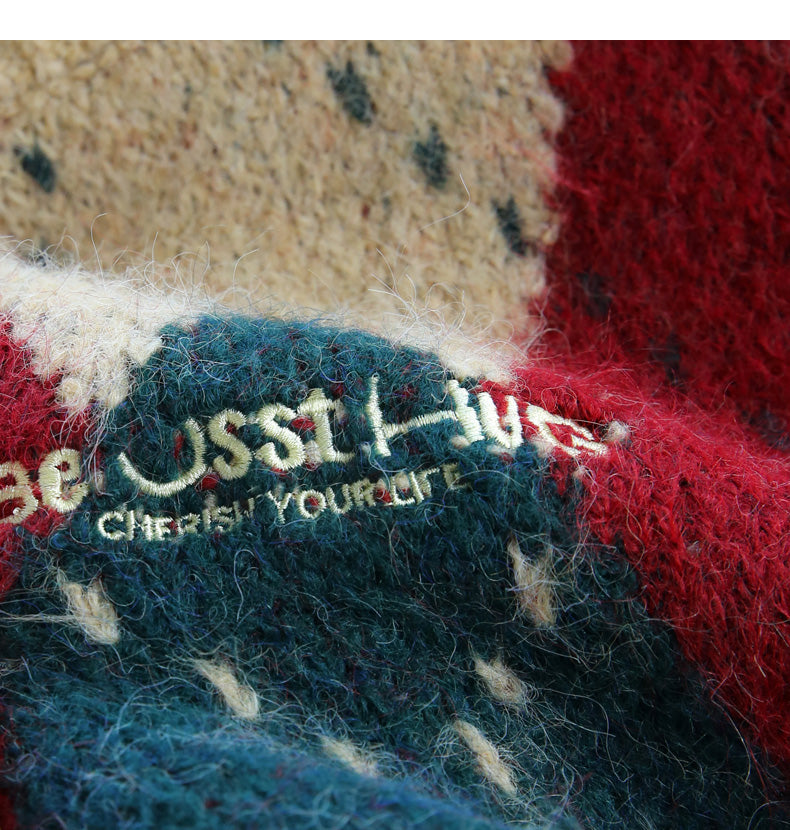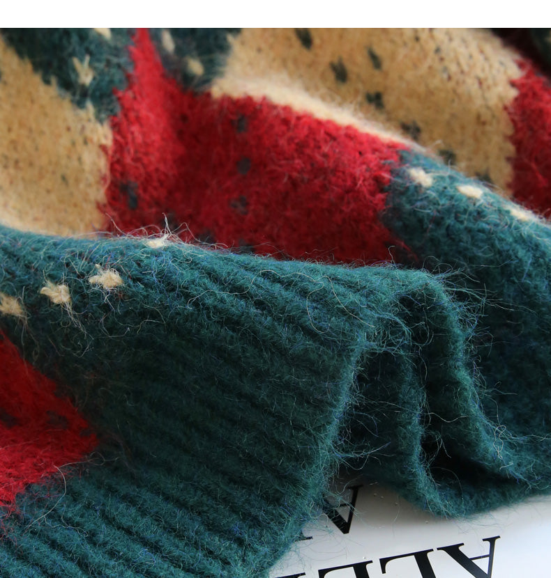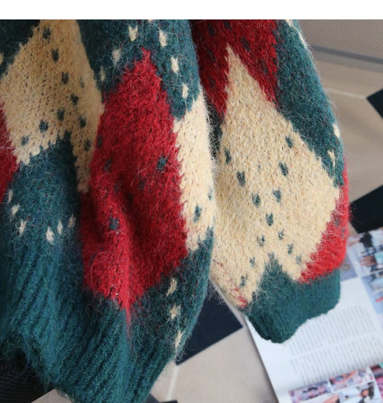 Atmospheric diamond contrast color round neck pullover sweater ED0488