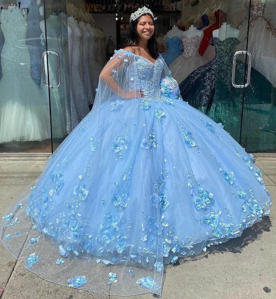Ball Gown Pink 3D Flowers Off The Shoulder Quinceanera Dresses, Sweet 16 Dresses SH552