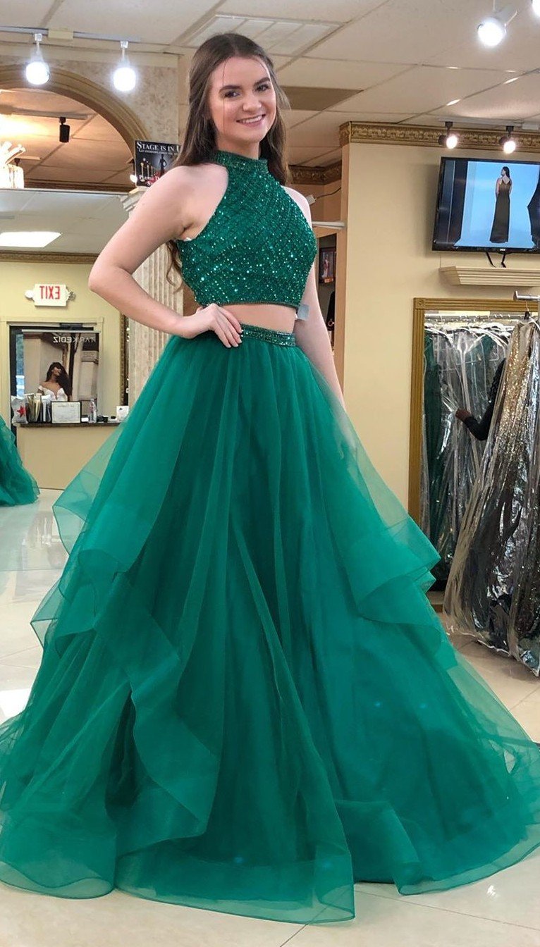 Ball Gown Two Pieces Green Prom Dress with Tiered Skirt cg2237