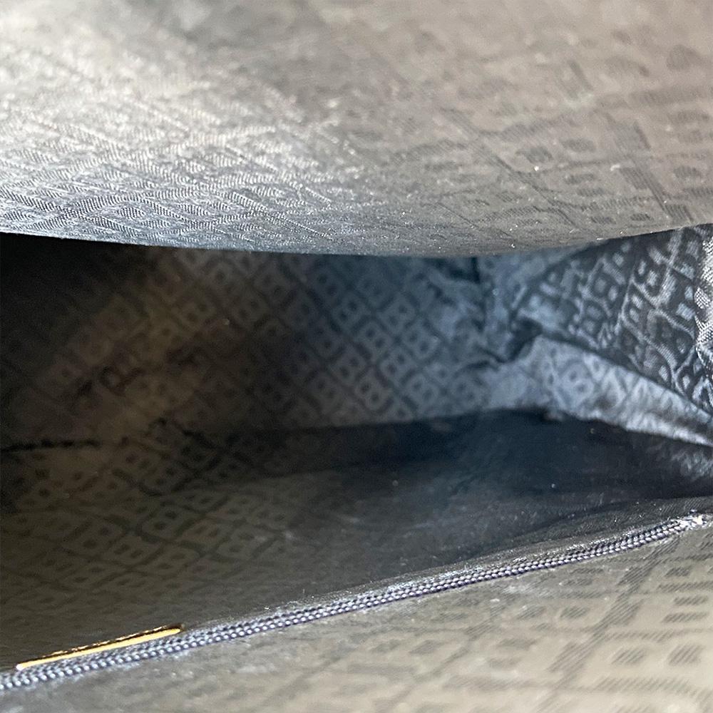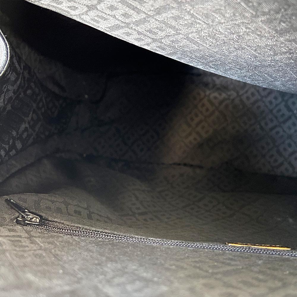Description : Bally black leather quilted long top handle bag with fabric lined interior