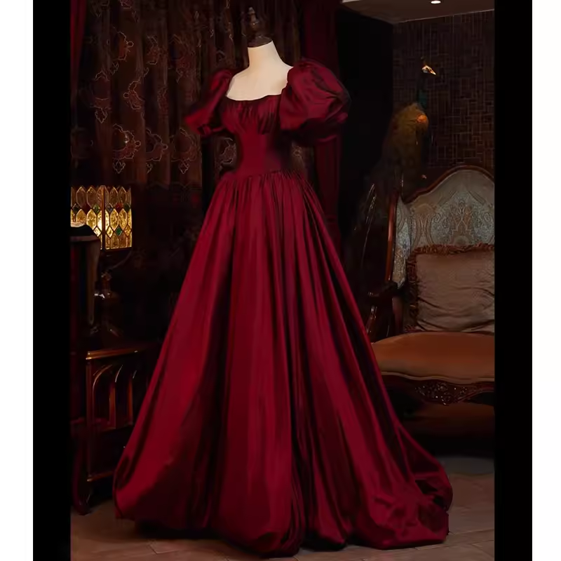 Beautiful Ball Gown Square Neckline Satin Long Burgundy Prom Dress P1330