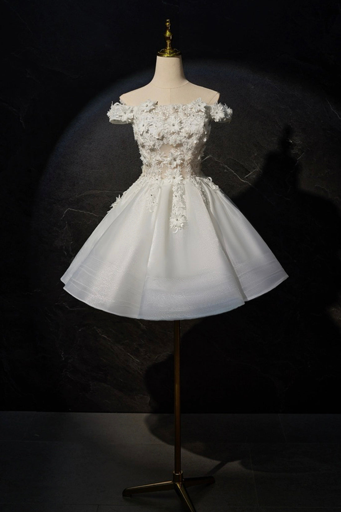 Beautiful Flowers Lace Short Prom Dress, White A-Line Evening Party Dress