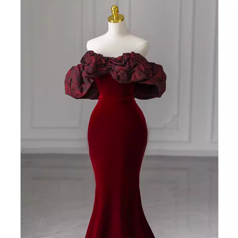 Beautiful Mermaid Off The Shoulder Long Red Prom Dress P1329