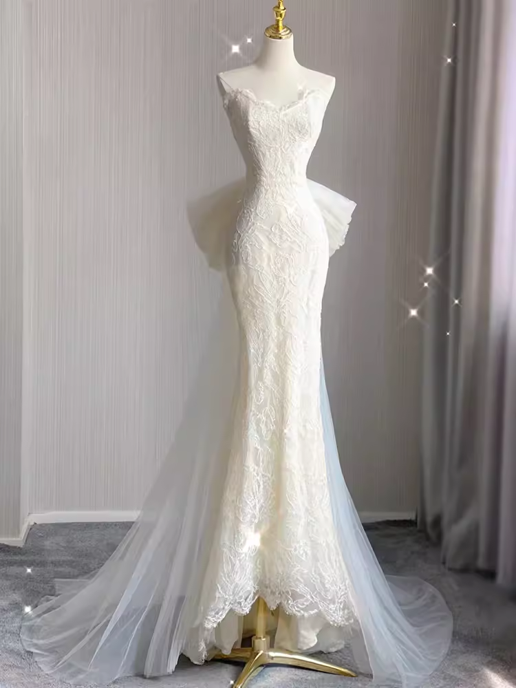 Beautiful Mermaid White Lace Long Wedding Dresses P1059