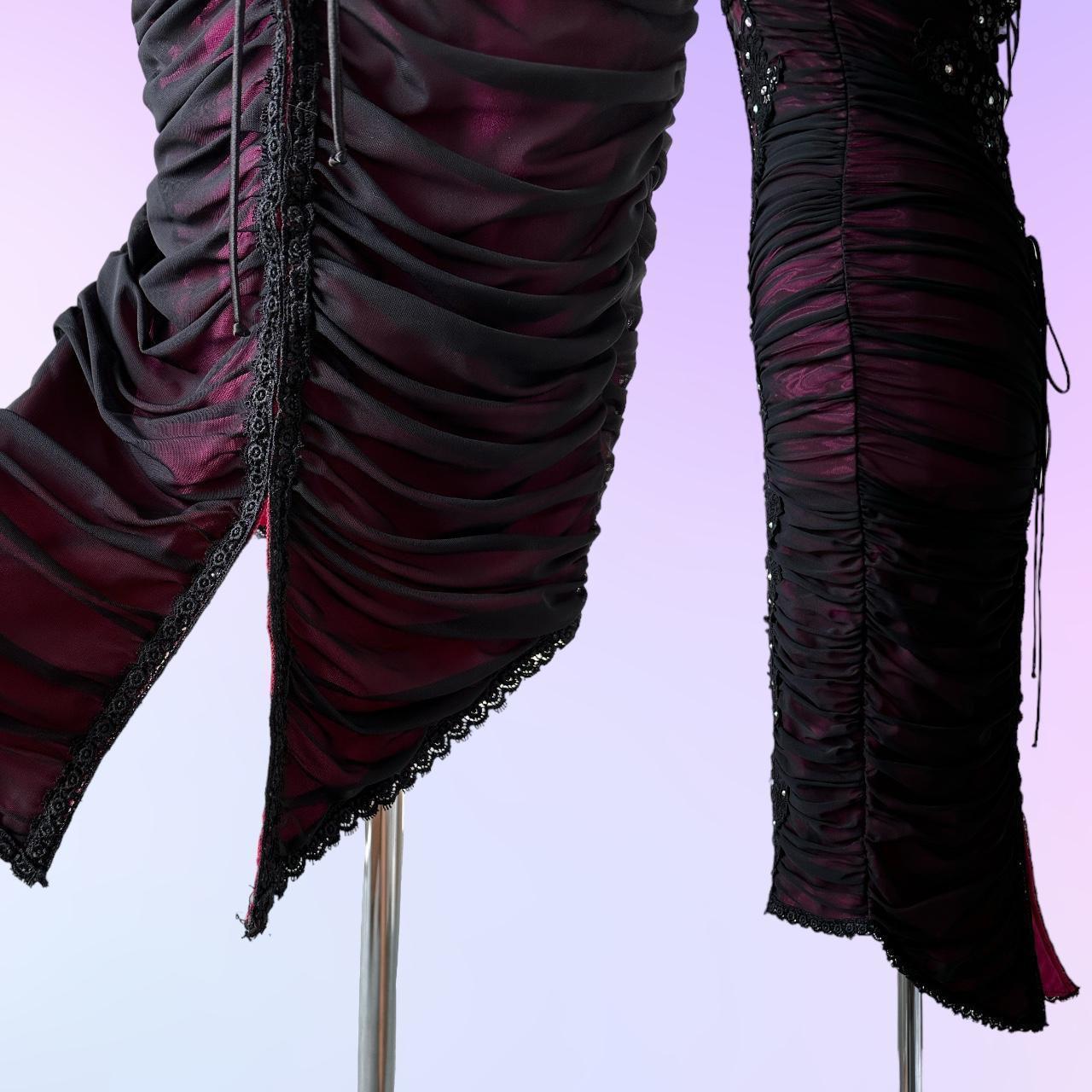 Berry pink stunning vintage fashion pleated mesh midi length elegant lace ball gown evening dress birthday party dress prom dress gh3643