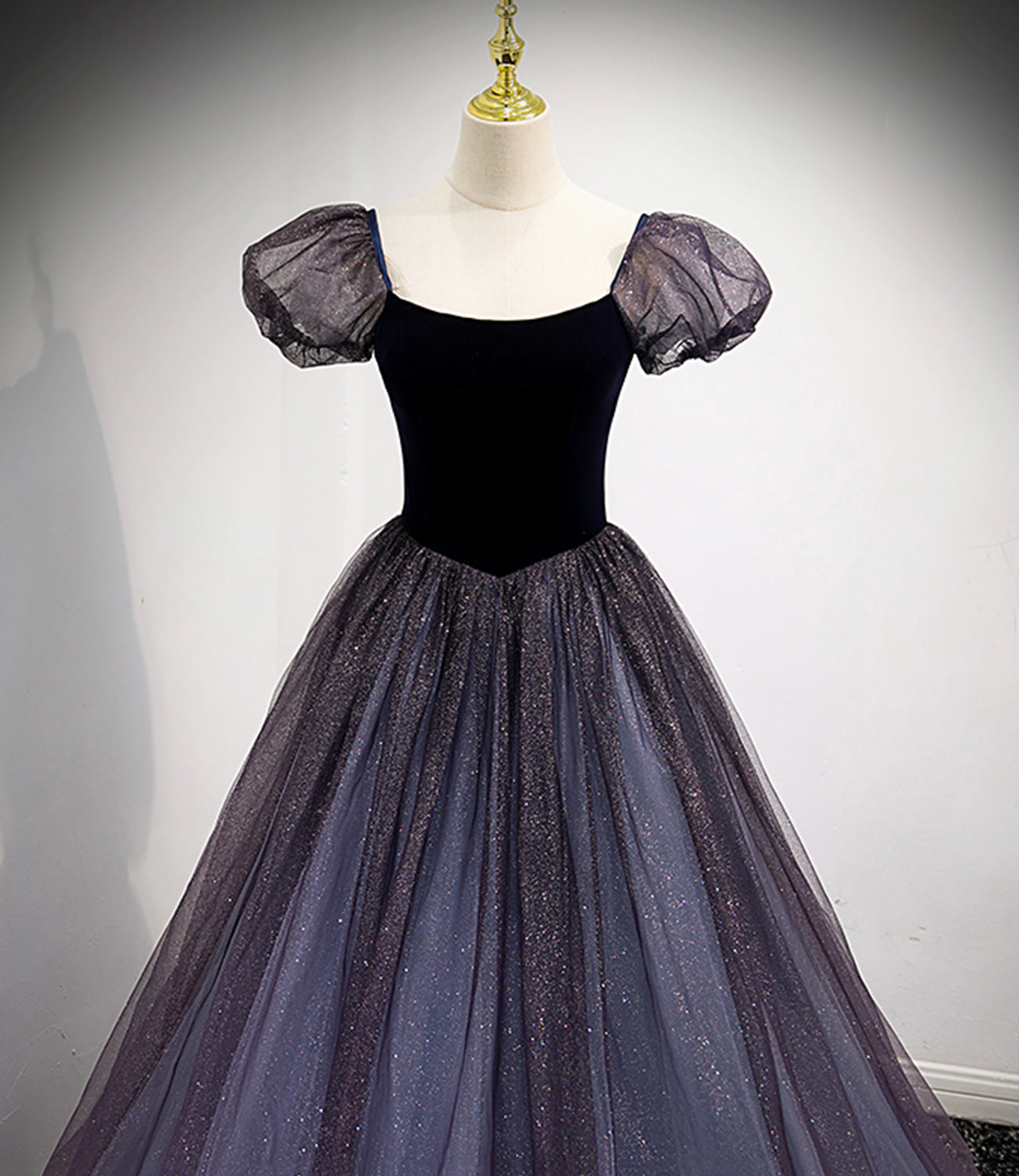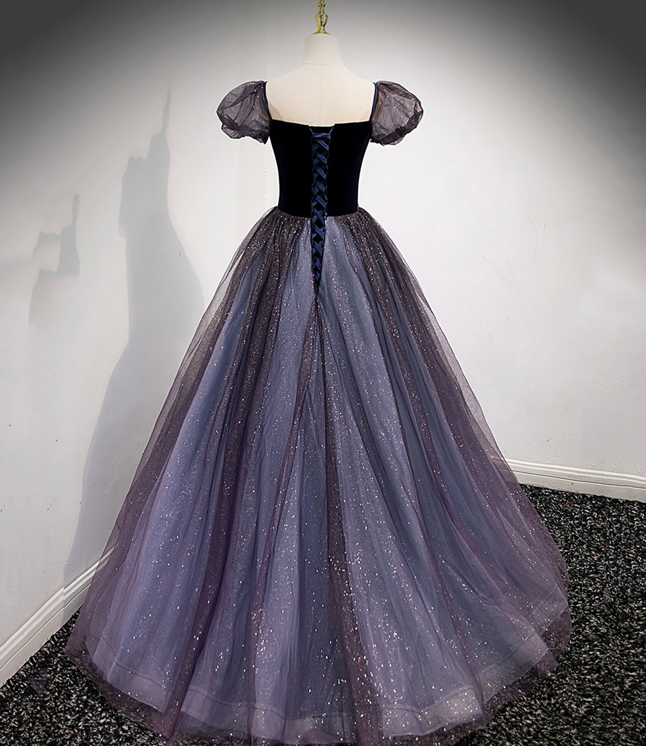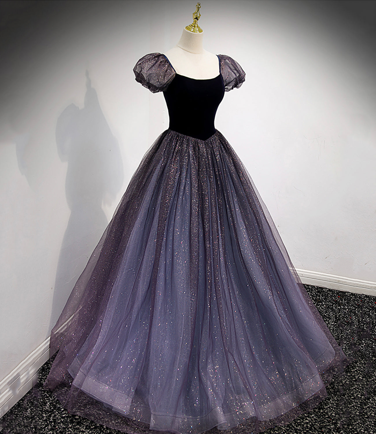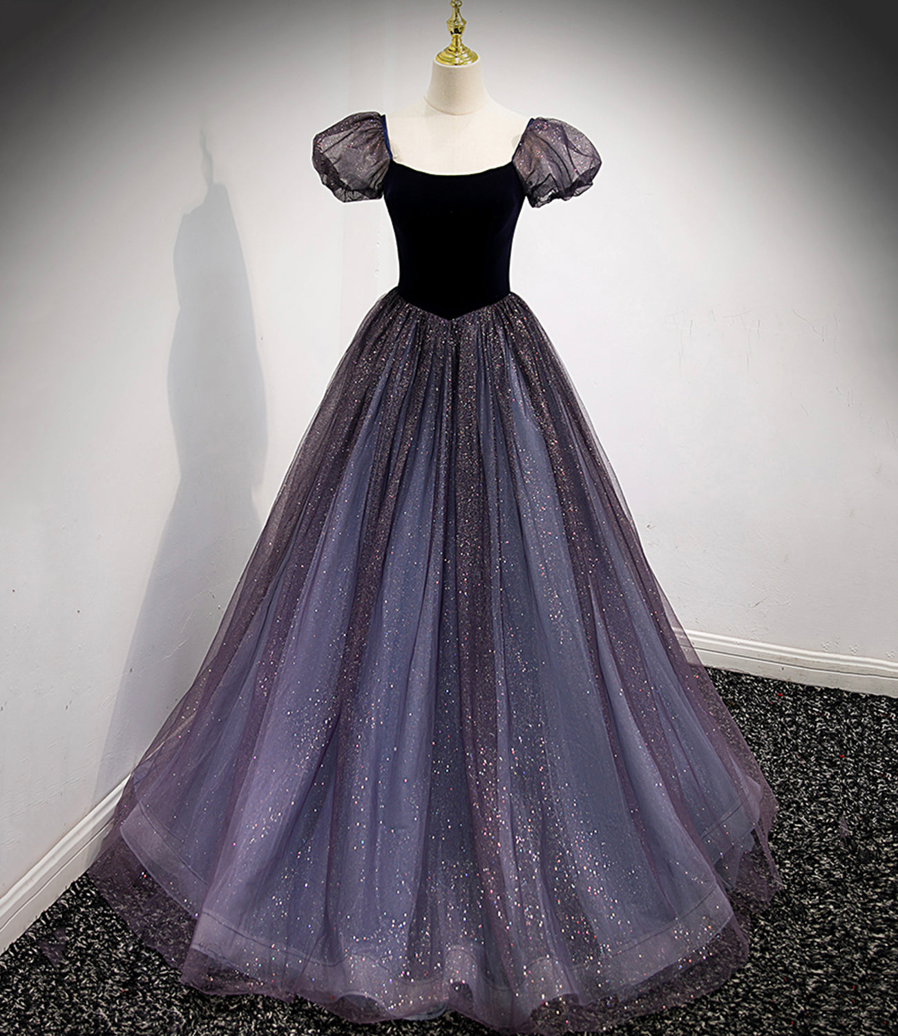 Black and purple tulle long prom dress evening dress