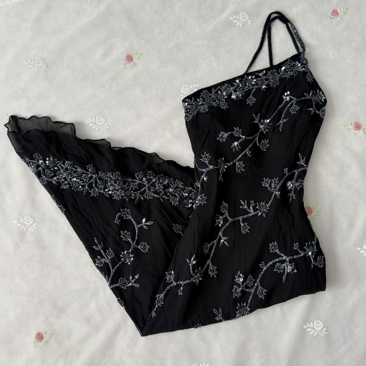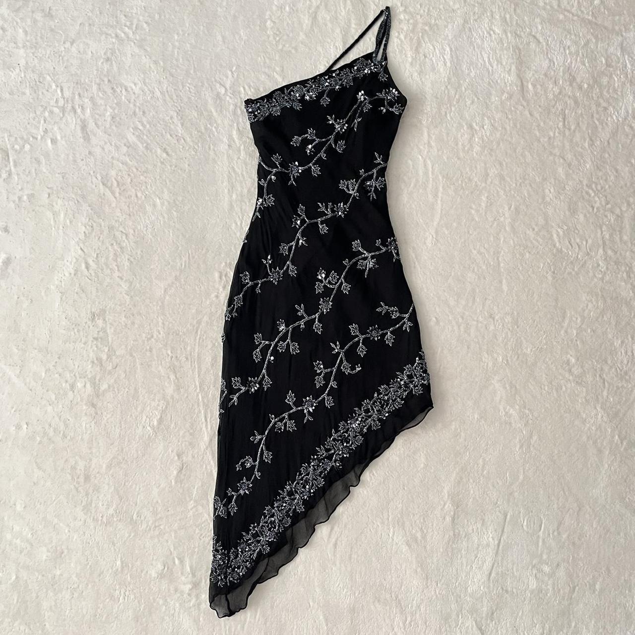 Black and Silver Vintage Gorgeous Elegant Exquisite Beaded Long Chiffon Sequin Asymmetric Skirt Dress Homecoming Dress Prom Dress Evening Dress Party Dress gh4123