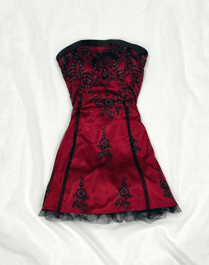 Black Appliques A Line Strapless Black Tulle Burgundy Satin Short Homecoming Dress Birthday Dress Outfits SH3540